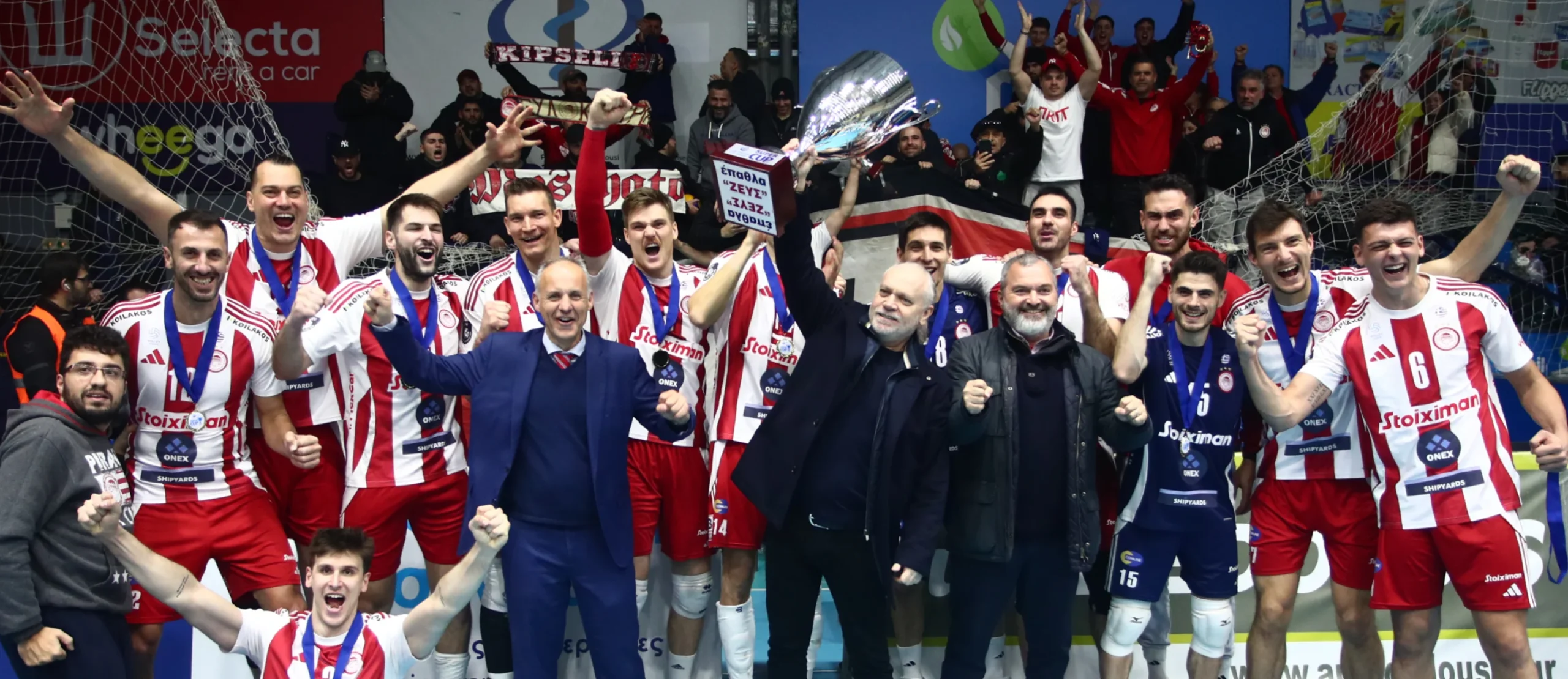 Με καρδιά και ψυχή πρωταθλητή, η ομάδα βόλεϊ Ανδρών του Ολυμπιακού ΟΝΕΧ κατέκτησε τον δεύτερο τίτλο της στη σεζόν, μετά το League Cup! Οι «ερυθρόλευκοι» πανηγύρισαν την κατάκτηση του τέταρτου Super Cup της ιστορίας τους, αφού στον τελικό στο Μαρκόπουλο, νίκησαν με 3-2 σετ (25-20, 25-15, 17-25, 24-26, 9-15) τον Παναθηναϊκό, με θρυλική ανατροπή από 2-0, με MVP τον «μαέστρο» Καβάνα και πρώτο σκόρερ τον Ατανασίεβιτς, με 24 πόντους, με 17/30 επιθέσεις, πέντε άσους και δύο μπλοκ (10 ο Τζούριτς, 10 ο Πέριν).